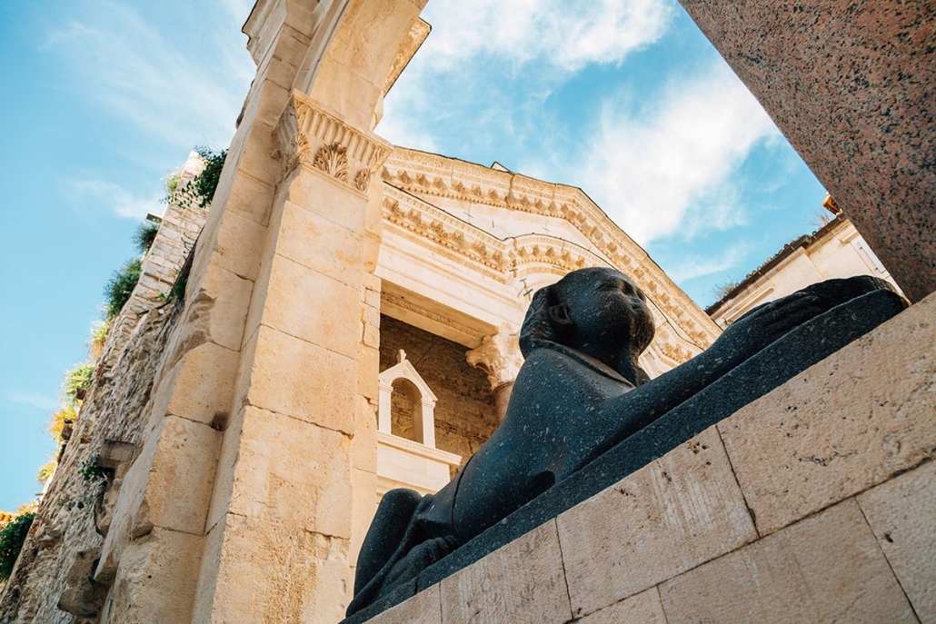 Roman emperor Gaius Aurelius Valerius Diocletianus who voluntarily gave up the throne of the Roman Empire, in the turn of the 4th century CE, ordered the construction of the heavily fortified compound in the Illyrian province of Rome, on the shores of the Adriatic, to settle after his retirement. The location of the palace was chosen because the Emperor spent his childhood in the town of Solin, which was located very close to the current Split. Considered to be one of the most impressive ruins of Roman architecture, Diocletian’s palace is certainly the main attraction of the city of Split. They represent the most valuable surviving buildings of the Roman era on the Adriatic coast. In the ancient palace you can find antiques, including three 3500 years old sphinxes, brought to Split from Egypt for the Emperor. The Roman fortress has become the old town of Split, with numerous shops, cafes and restaurants, located in the old buildings on narrow streets of the palace.